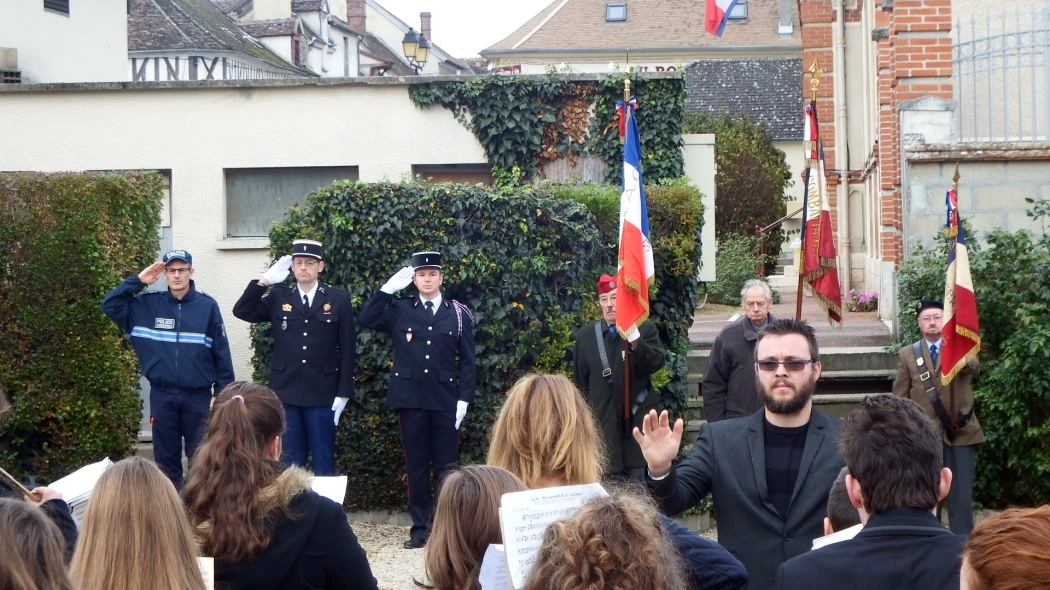 Le Conseil municipal jeunes de Bray-sur-Seine (CMJ), assistait à la cérémonie commémorative de l’Armistice du 11 novembre 1918. Mélina Briquet, jeune mairesse était aux côtés d’Emmanuel Marcadet et du représentant des Anciens Combattants pour rendre cet hommage à la mémoire des disparus de la Grande Guerre. Les rangs des Anciens Combattants se clairsement d’année en année. Ceux de la Seconde Guerre mondiale, de l’Algérie, du Maroc et de la Tunisie qui assurent le relai, constatent que les jeunes générations respectent et respecteront la mémoire de leur sacrifice.