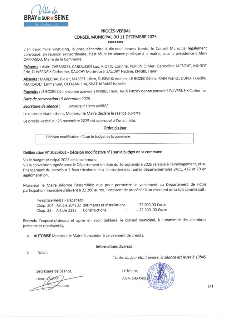 Procès Verbal Conseil Municipal du 11 décembre 2025